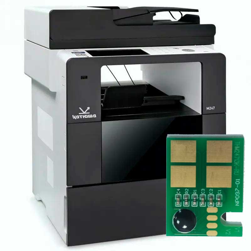 Российский разработчик и поставщик принтеров и МФУ под торговой маркой «КАТЮША» достаточно настойчиво борется с заправкой картриджей для принтеров и МФУ Катюша P247/М247. За короткий промежуток времени успело смениться пару версий прошивок. Для устранения путаницы при первой смене прошивки аппараты получили приставку «Е» в конце названия аппарата. Было 247 — стало 247е. При этом на аппаратах с индексом «Е» не работала даже оригинальная расходка без обновления встроенного ПО. После появления нового поколения чипов производитель весьма оперативно сменил ПО аппаратов, и новые аппараты получили индекс «ЕР» (247ЕР). К новому ПО разработчик подошел весьма грамотно. Теперь для прошивки аппарата через флешку требуется специальный пароль и понизить версию прошивки не получится. Нов вот на рынке появились обновленные чипы для последней версии ПО 2025 на аппаратах, имеющих версию «ЕР». Аппараты успешно приняли эти чипы. Это отличная новость для владельцев аппаратов Катюша P247ep/М247ep. Так как стоимость «отечественных» расходных материалов совсем не дружественная.