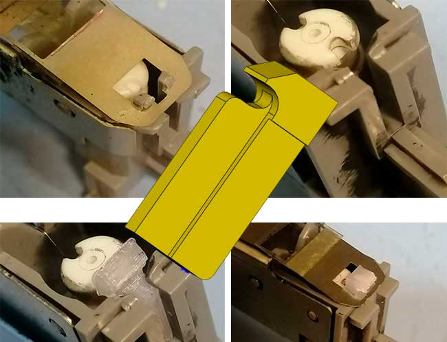 ABS пластик весьма хрупкий материал, но весьма недорог в производстве. Основание решетки коротрона сделано именно из этого пластика. Со временем пластик устаревает и становиться хрупким. Для крепления решетки коротрона используются очень хлипкие крепления и со временем они ломаются. Тут остается два варианта, или покупать новый блок, или решетку коротрона в сборе. И тот тот вариант весьма дорог. Нами было разработано универсальное крепление решетки коротрона. Крепление просто устанавливается в паз и не требует дополнительных средств в виде клея. Ушко крепления было усиленно для исключения его поломки от времени.